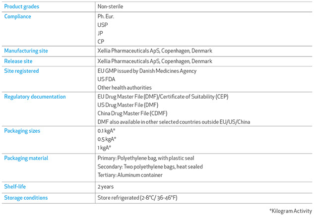 Applications: Administered intravenously as a colloidal complex with sodium deoxycholate or as a liposomal formulation. The low germ and endotoxin content makes Xellia’s amphotericin B particularly suitable for parenteral use.