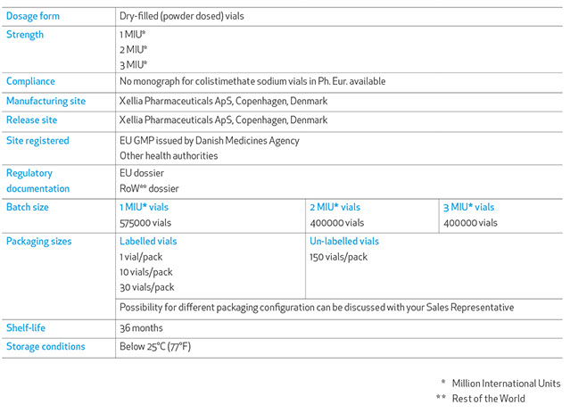 Indication: Used in the treatment of patients with serious infections due to selected aerobic Gram-negative pathogens with limited treatment options.
