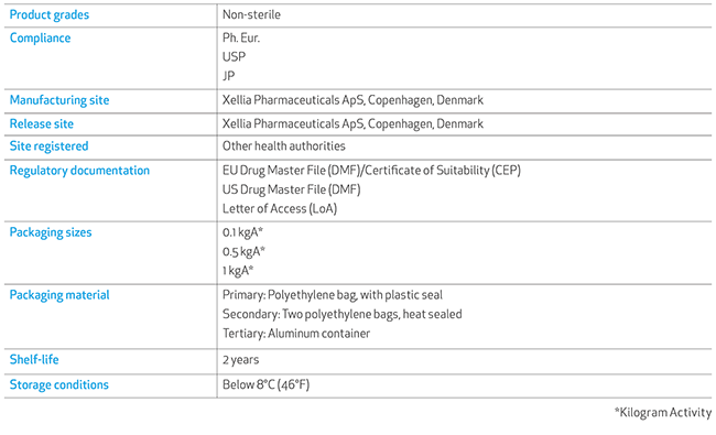 Applications: Administered intravenously as a colloidal complex with sodium deoxycholate or as a liposomal formulation. The low germ and endotoxin content makes Xellia’s amphotericin b particularly suitable for parenteral use.