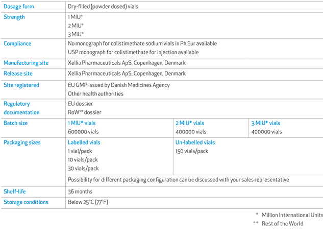 Indication: Used in the treatment of patients with serious infections due to selected aerobic Gram-negative pathogens with limited treatment options.